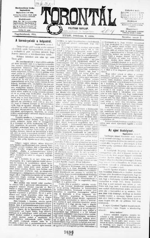 Torontál, 33. évf. 1904. január 2. 1. sz.