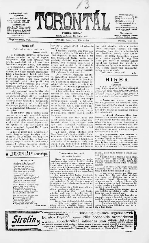 Torontál, 33. évf. 1904. július 15. 160. sz.