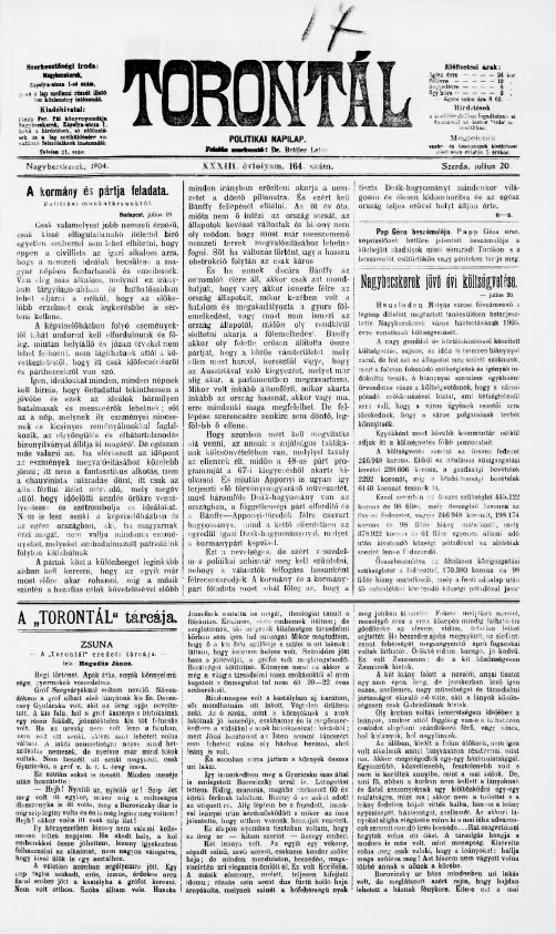 Torontál, 33. évf. 1904. július 20. 164. sz.