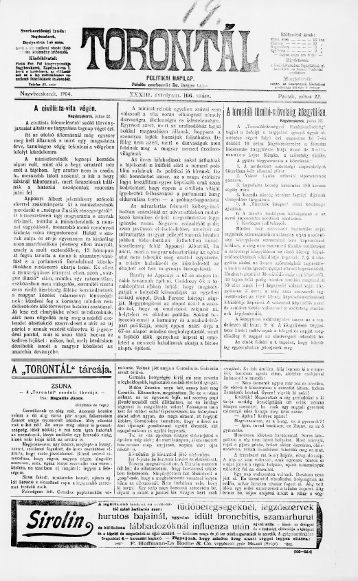 Torontál, 33. évf. 1904. július 22. 166. sz.