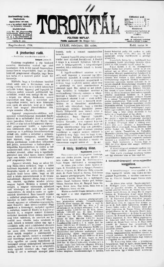 Torontál, 33. évf. 1904. június 14. 134. sz.