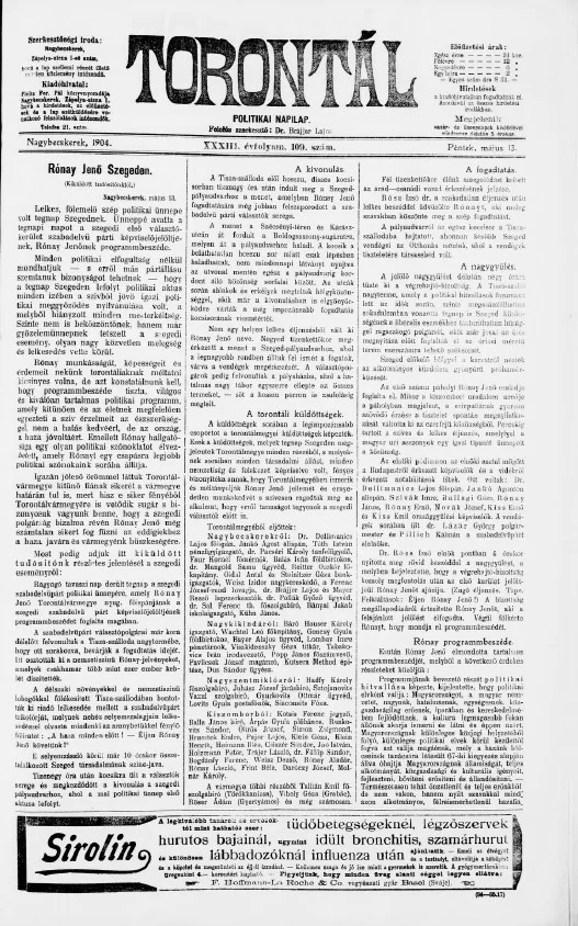 Torontál, 33. évf. 1904. május 13. 109. sz.