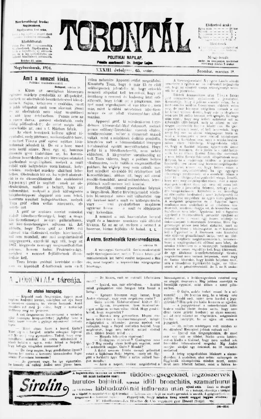 Torontál, 33. évf. 1904. március 19. 65. sz.