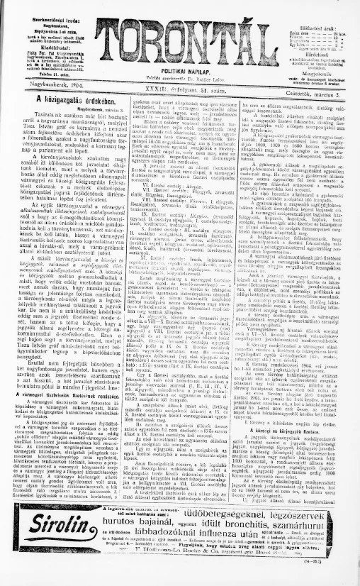 Torontál, 33. évf. 1904. március 3. 51. sz.
