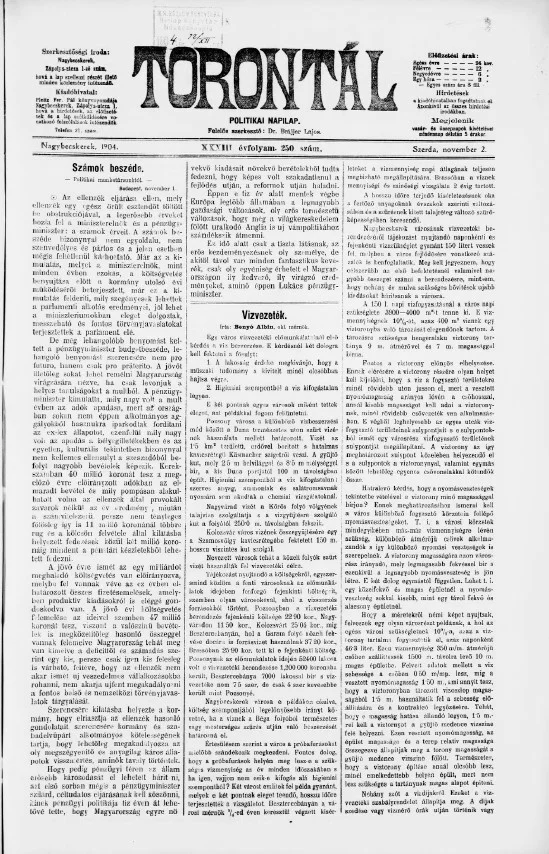 Torontál, 33. évf. 1904. november 2. 250. sz.
