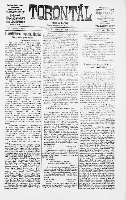 Torontál, 33. évf. 1904. november 28. 272. sz.