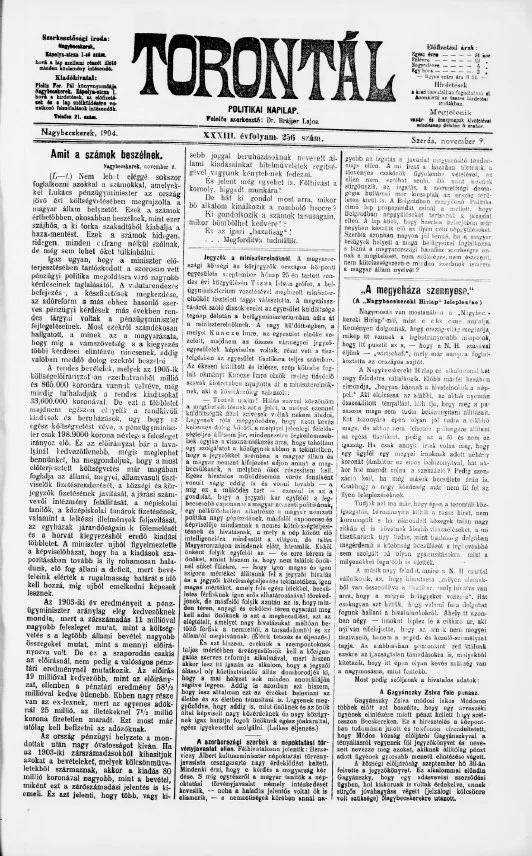 Torontál, 33. évf. 1904. november 9. 256. sz.