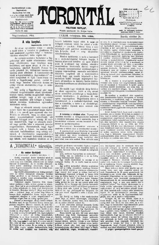 Torontál, 33. évf. 1904. október 26. 245. sz.