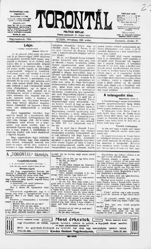 Torontál, 33. évf. 1904. október 27. 246. sz.