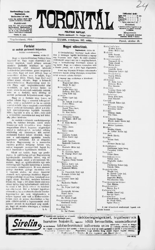 Torontál, 33. évf. 1904. október 28. 247. sz.