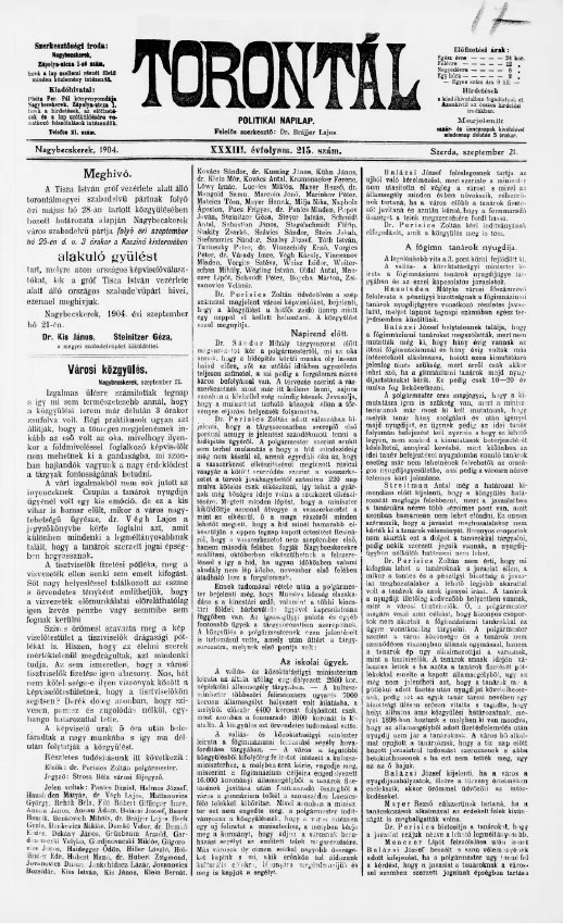 Torontál, 33. évf. 1904. szeptember 21. 215. sz.