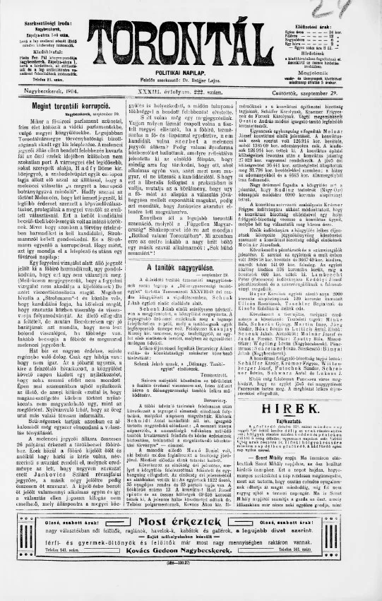 Torontál, 33. évf. 1904. szeptember 29. 222. sz.