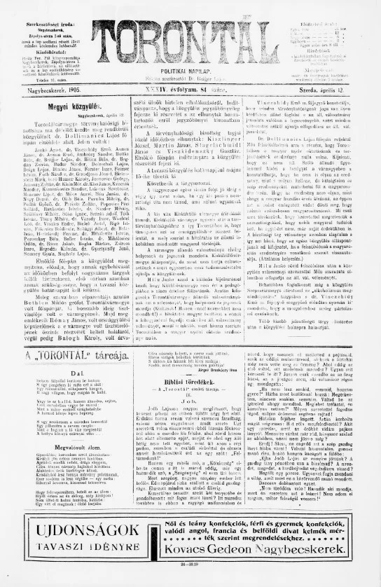 Torontál, 34. évf. 1905. április 12. 84. sz.