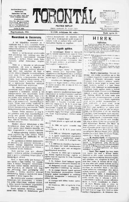 Torontál, 34. évf. 1905. április 25. 94. sz.