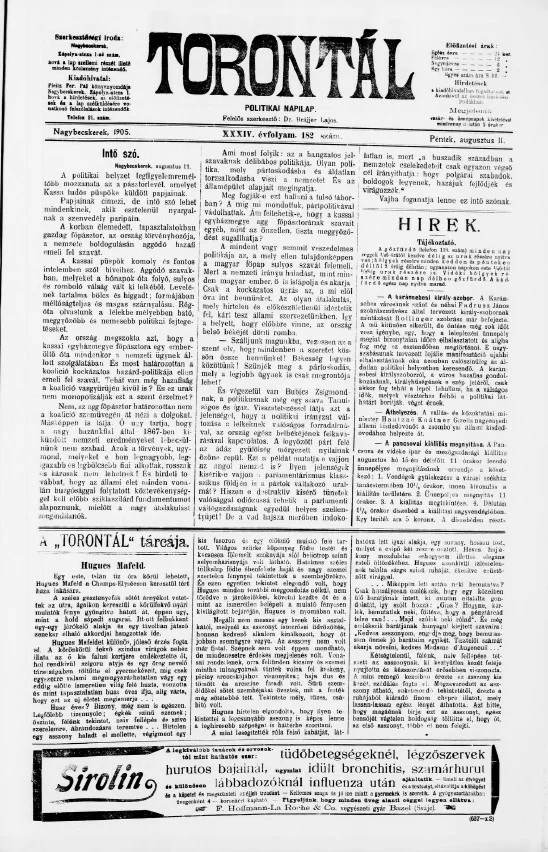 Torontál, 34. évf. 1905. augusztus 11. 182. sz.