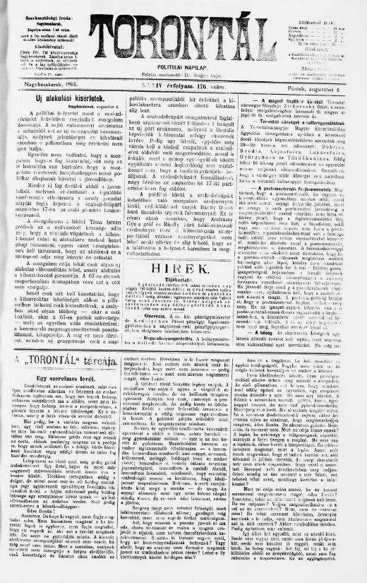 Torontál, 34. évf. 1905. augusztus 4. 176. sz.