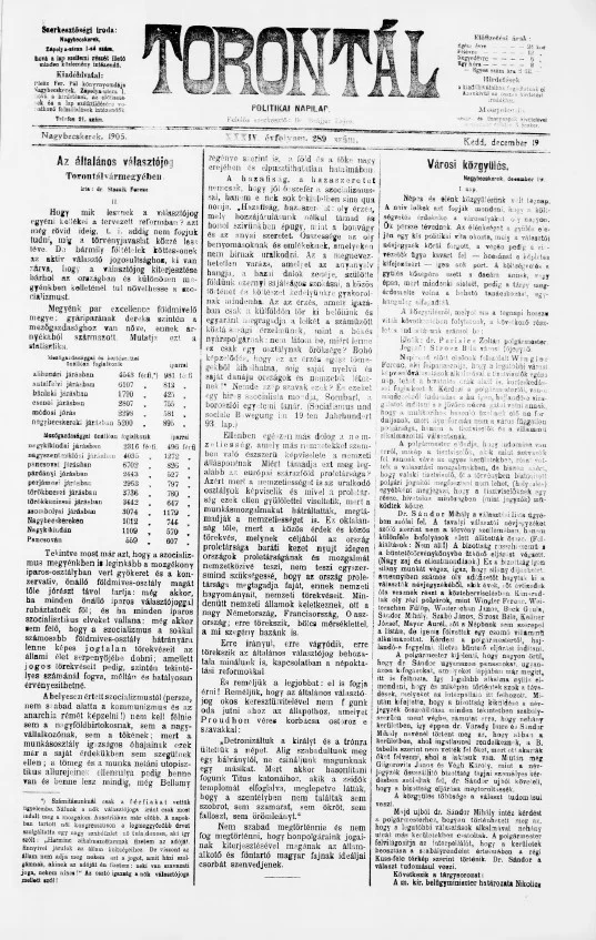 Torontál, 34. évf. 1905. december 19. 289. sz.