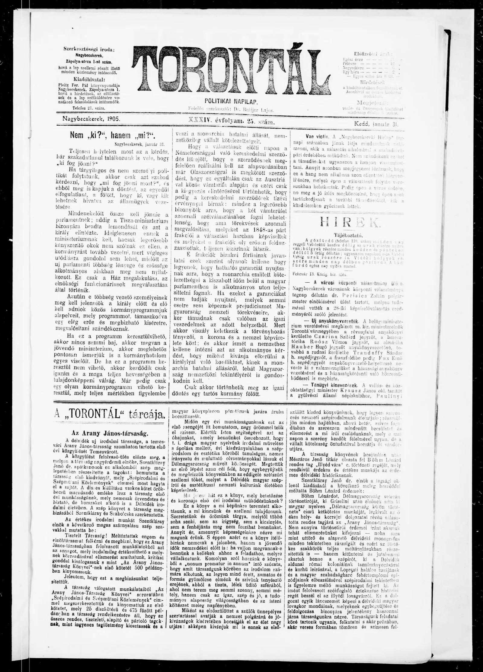 Torontál, 34. évf. 1905. január 31. 25. sz.