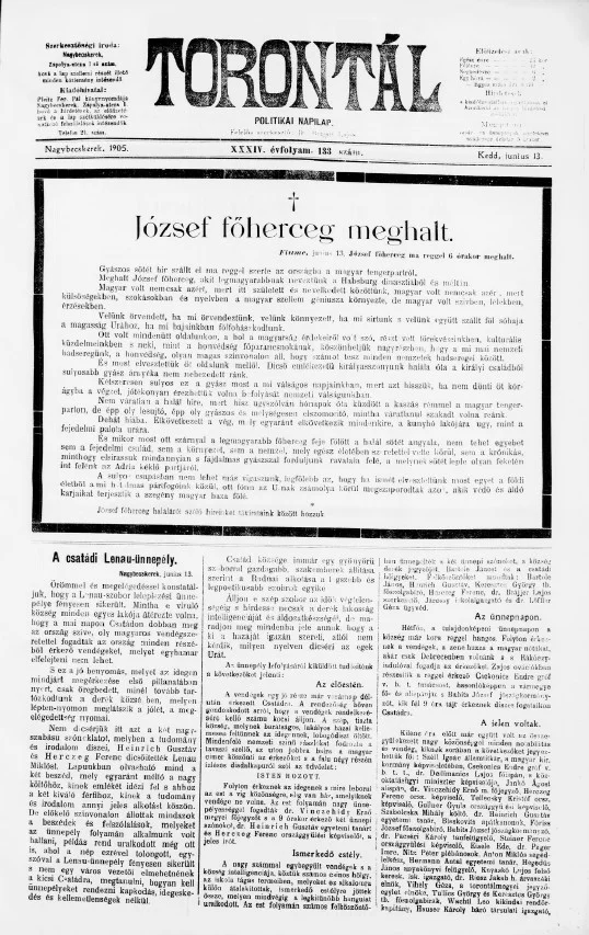 Torontál, 34. évf. 1905. június 13. 133. sz.