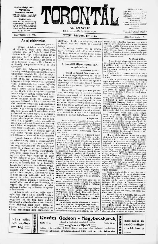 Torontál, 34. évf. 1905. június 17. 137. sz.