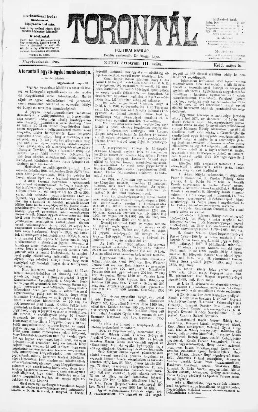 Torontál, 34. évf. 1905. május 16. 111. sz.
