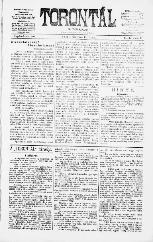 Torontál, 34. évf. 1905. május 31. 124. sz.