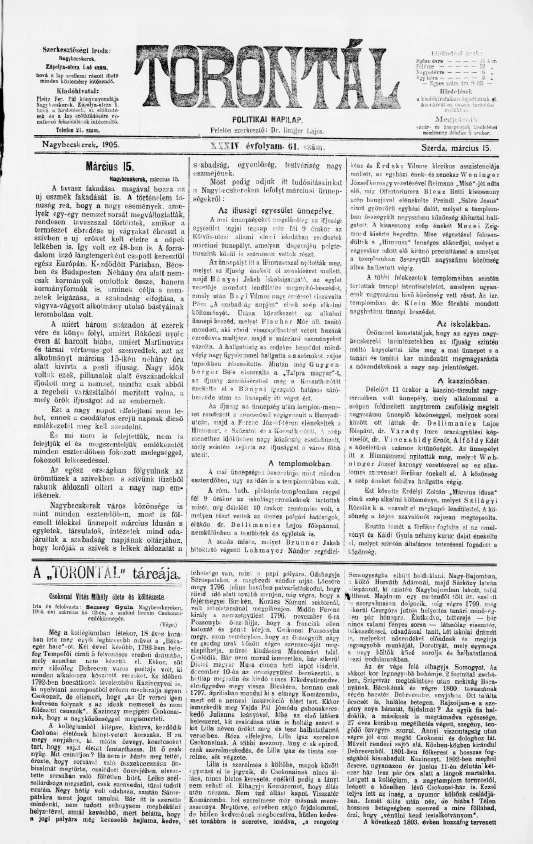Torontál, 34. évf. 1905. március 15. 61. sz.