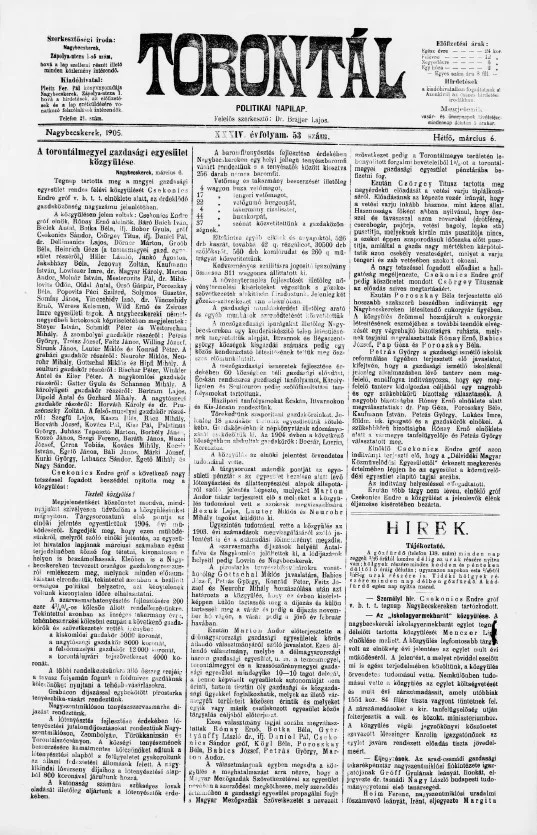 Torontál, 34. évf. 1905. március 6. 53. sz.