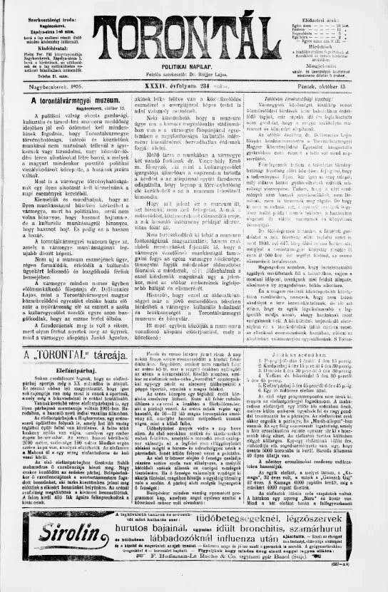 Torontál, 34. évf. 1905. október 13. 234. sz.