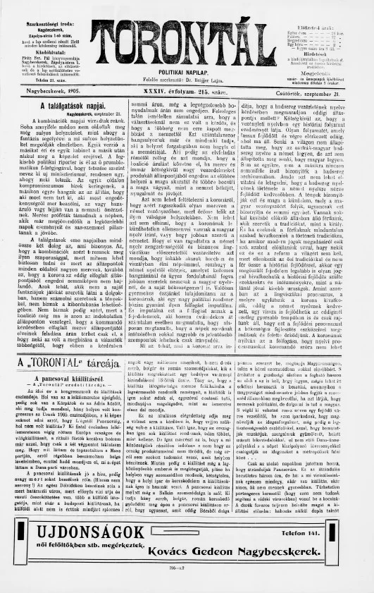 Torontál, 34. évf. 1905. szeptember 21. 215. sz.