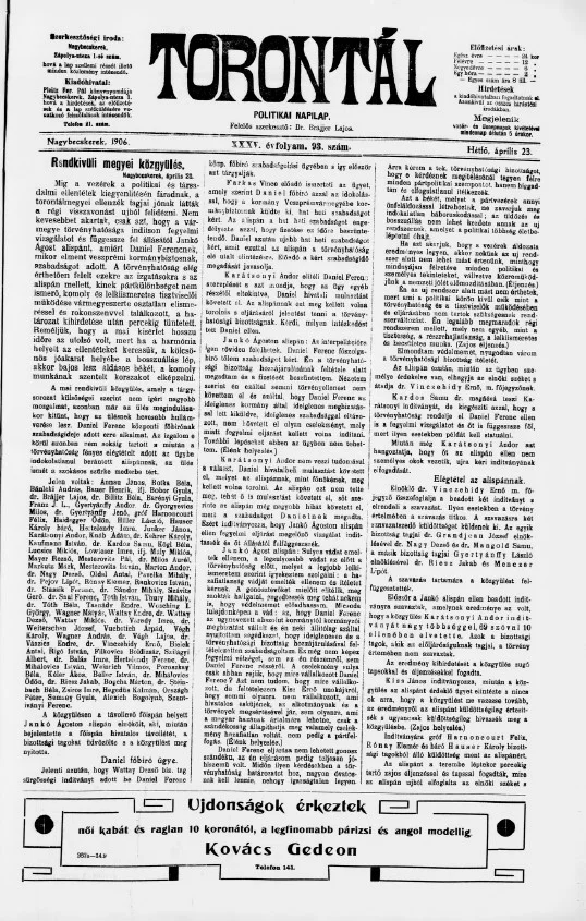 Torontál, 35. évf. 1906. április 23. 93. sz.