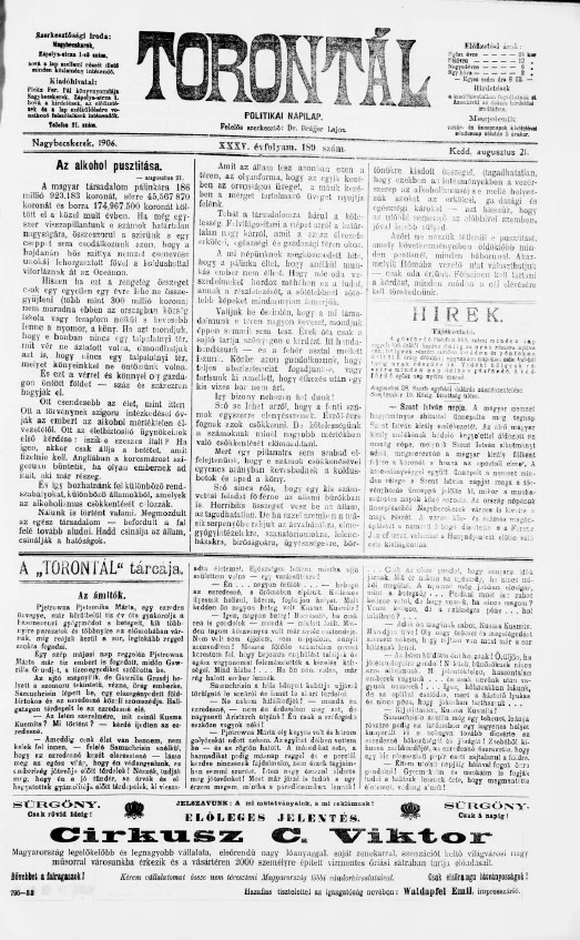 Torontál, 35. évf. 1906. augusztus 21. 189. sz.