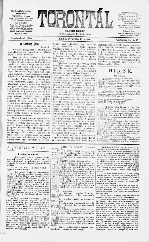 Torontál, 35. évf. 1906. február 15. 37. sz.