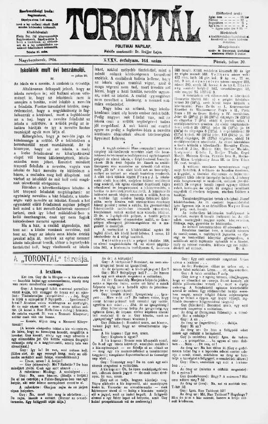 Torontál, 35. évf. 1906. július 20. 164. sz.