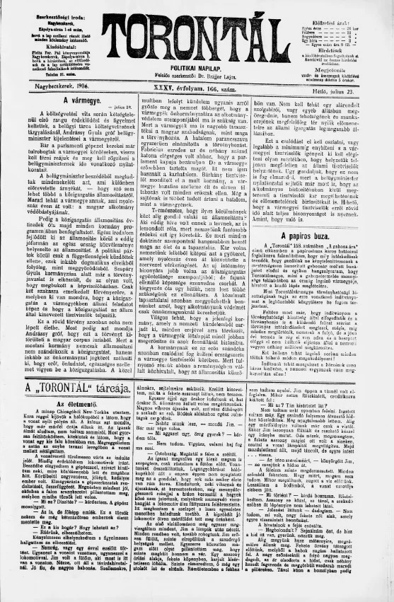 Torontál, 35. évf. 1906. július 23. 166. sz.