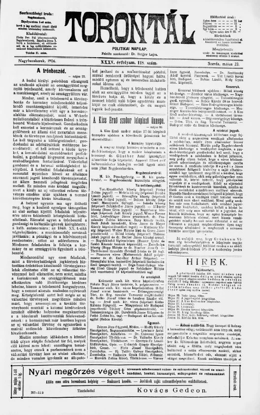 Torontál, 35. évf. 1906. május 23. 118. sz.
