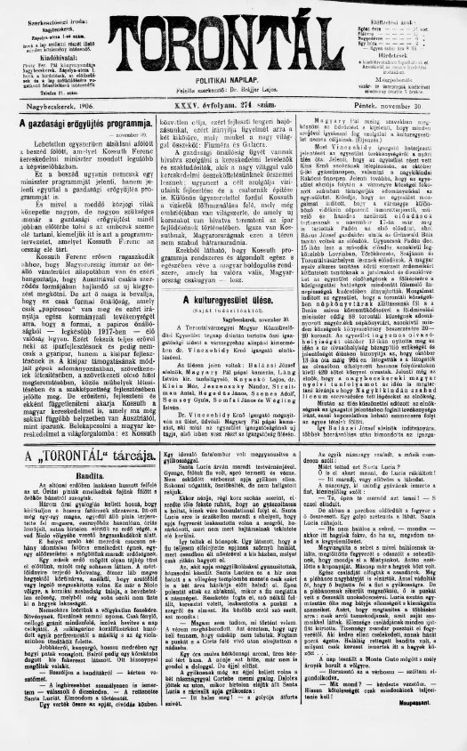 Torontál, 35. évf. 1906. november 30. 274. sz.