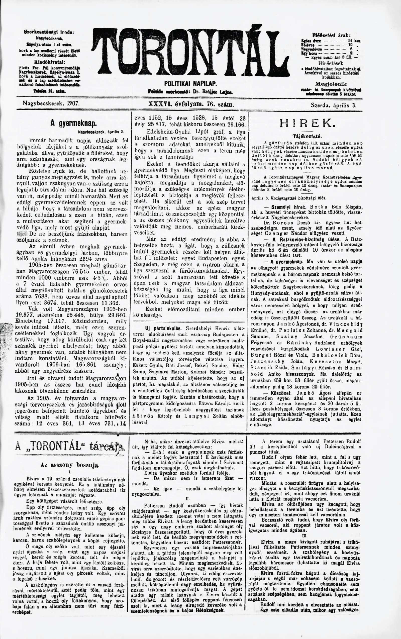 Torontál, 36. évf. 1907. április 3. 76. sz.