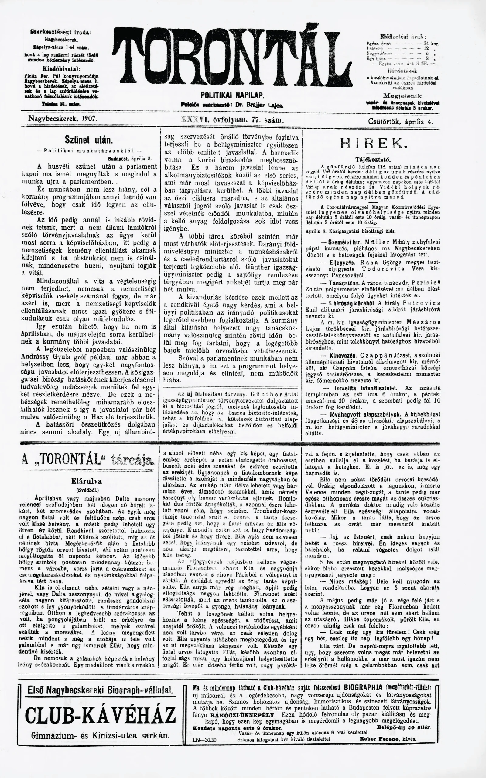 Torontál, 36. évf. 1907. április 4. 77. sz.