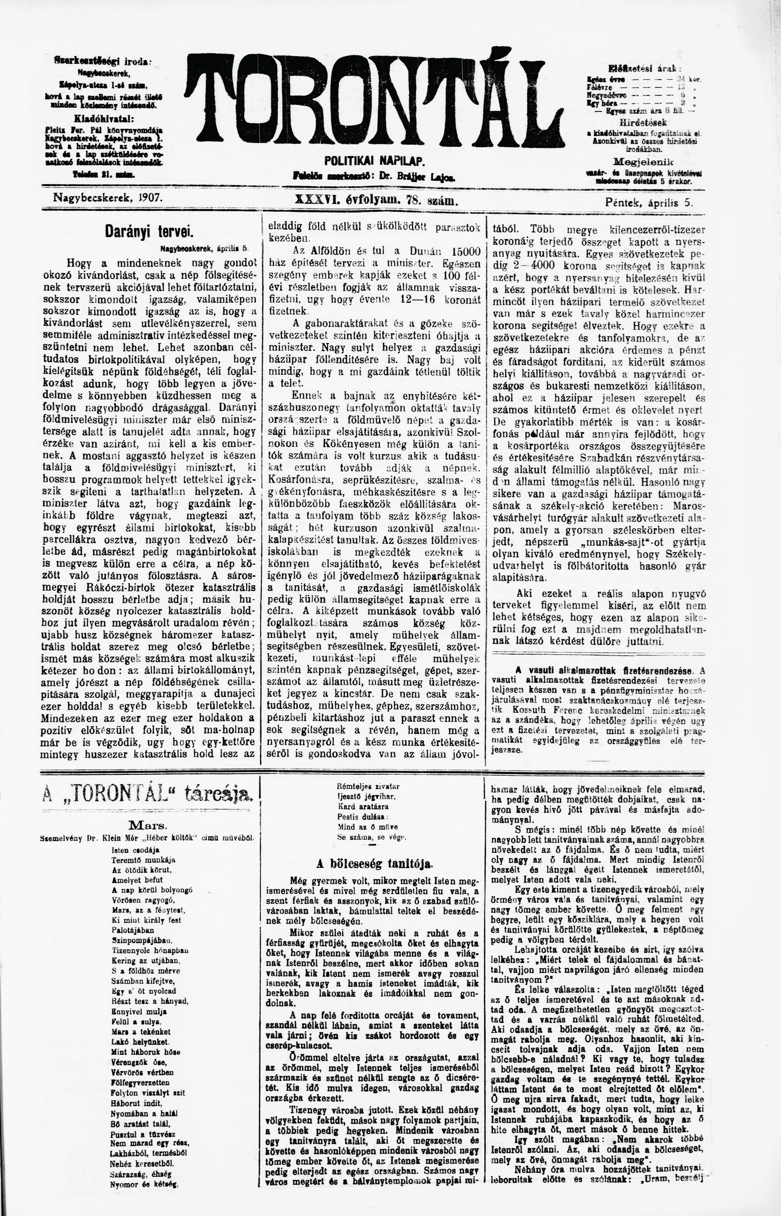 Torontál, 36. évf. 1907. április 5. 78. sz.