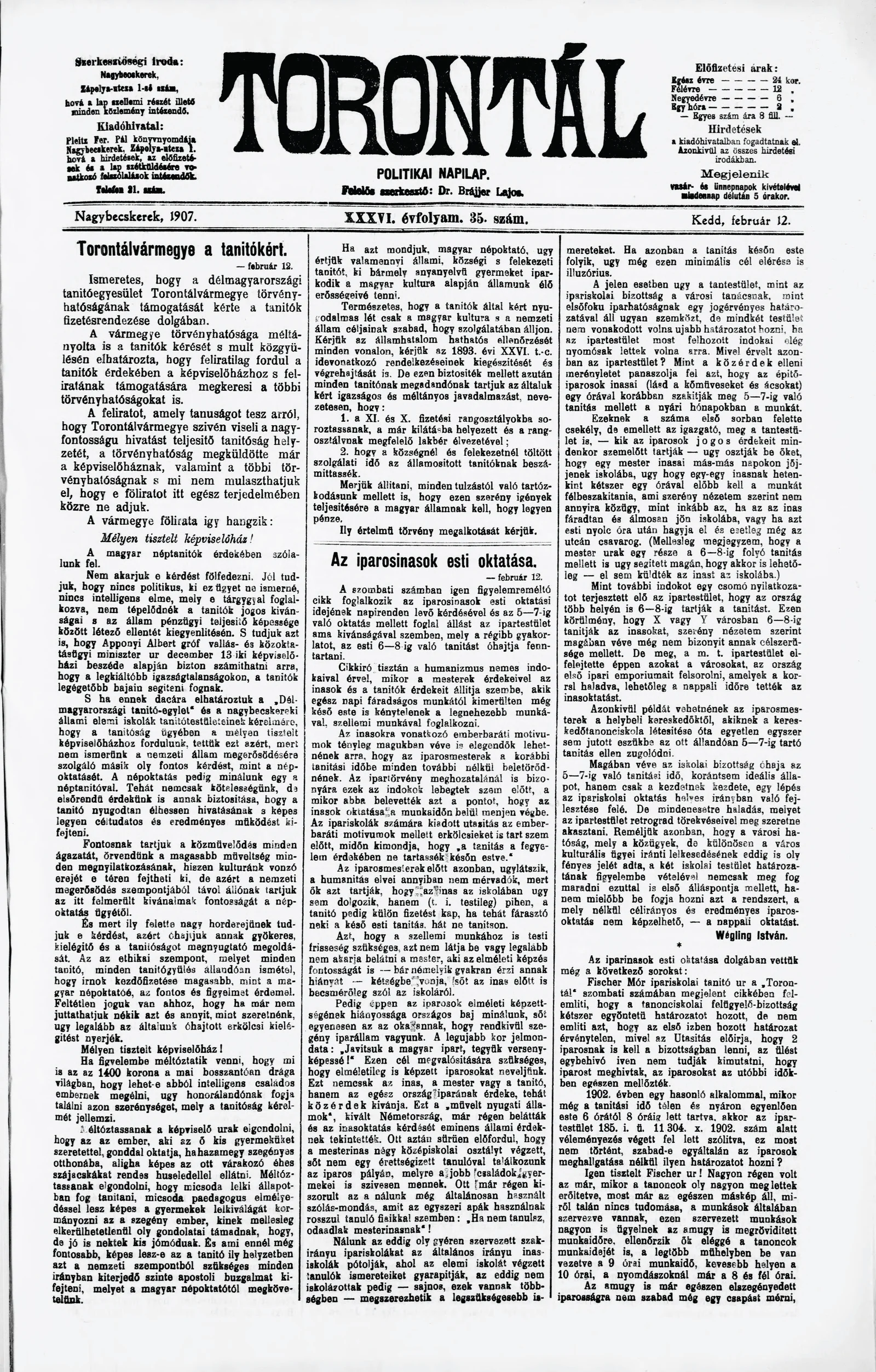 Torontál, 36. évf. 1907. február 12. 35. sz.