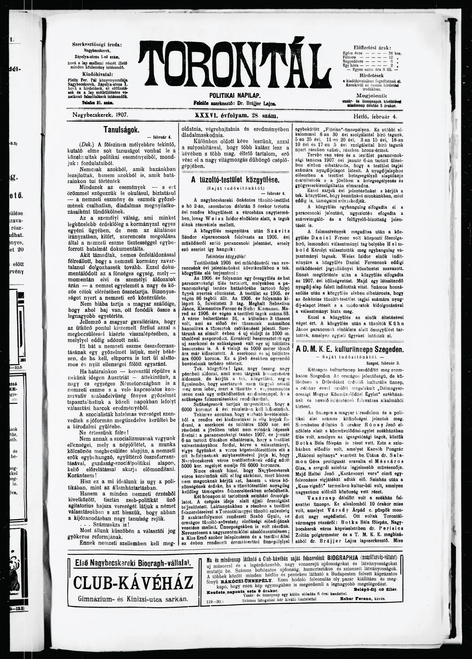 Torontál, 36. évf. 1907. február 4. 28. sz.