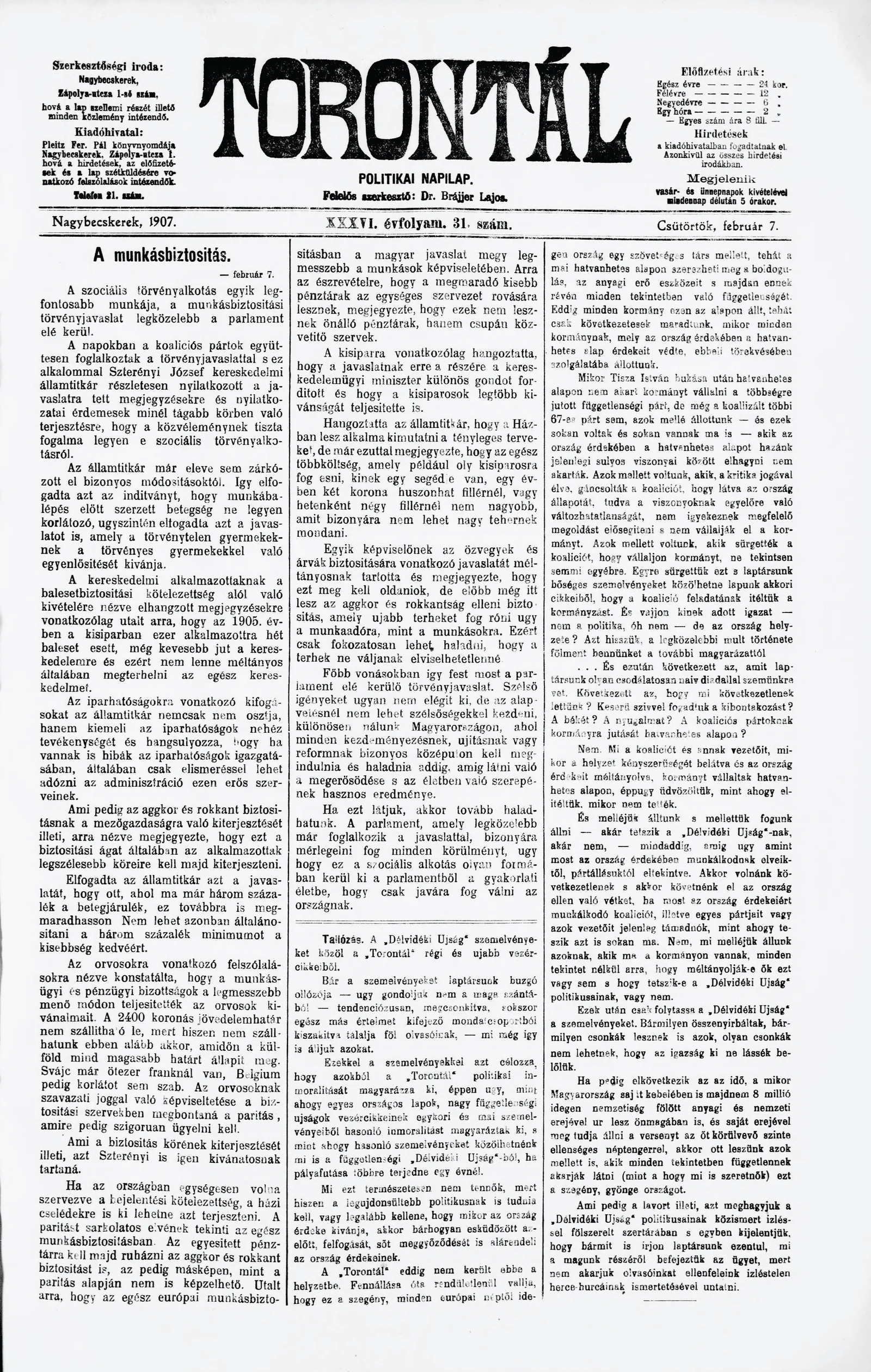 Torontál, 36. évf. 1907. február 7. 31. sz.