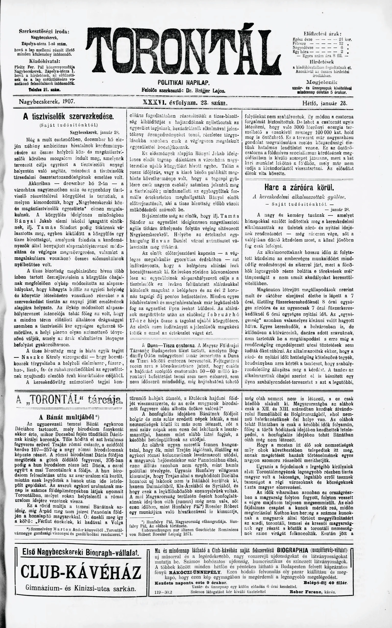 Torontál, 36. évf. 1907. január 28. 23. sz.