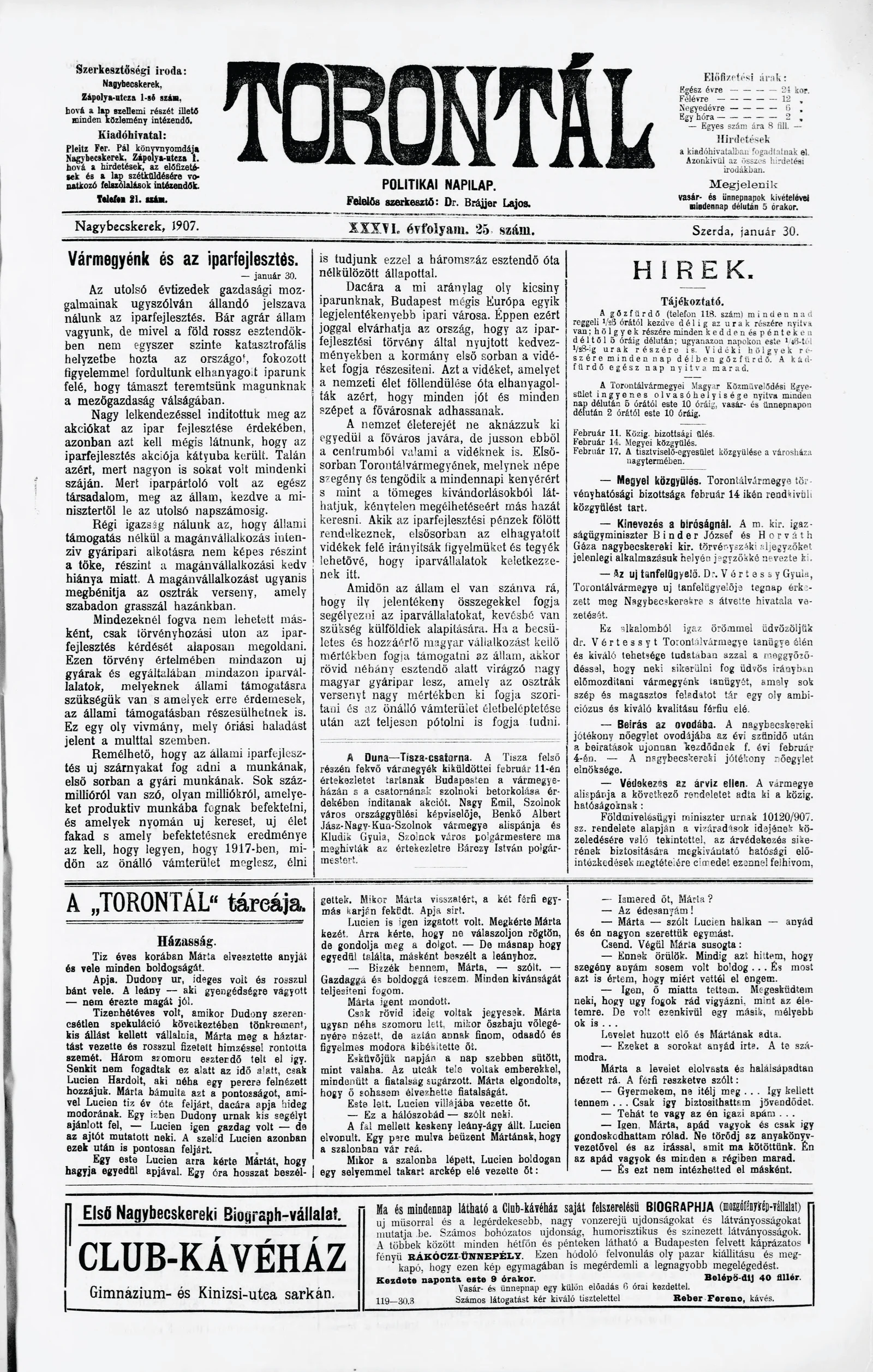 Torontál, 36. évf. 1907. január 30. 25. sz.