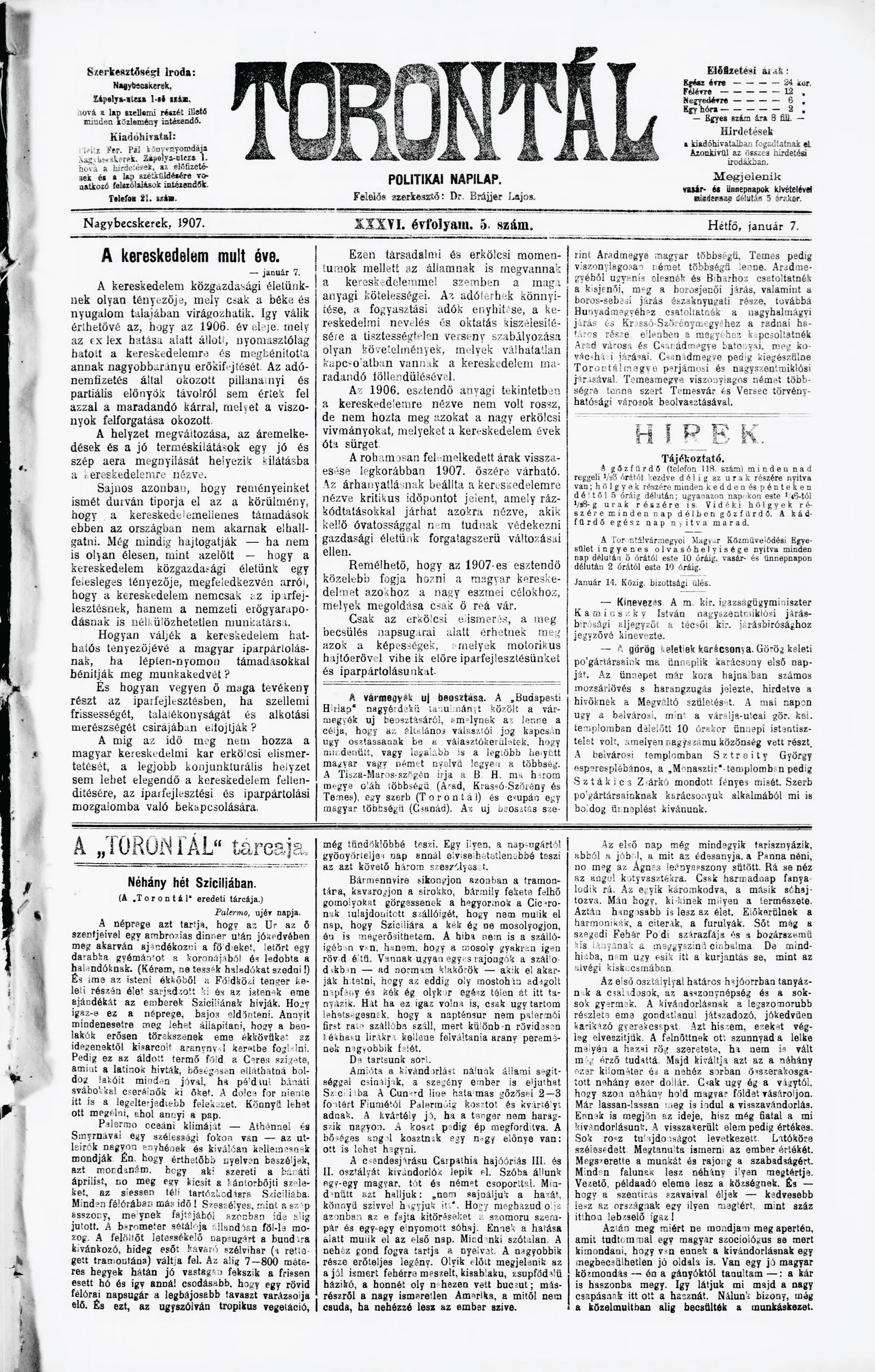 Torontál, 36. évf. 1907. január 7. 5. sz.