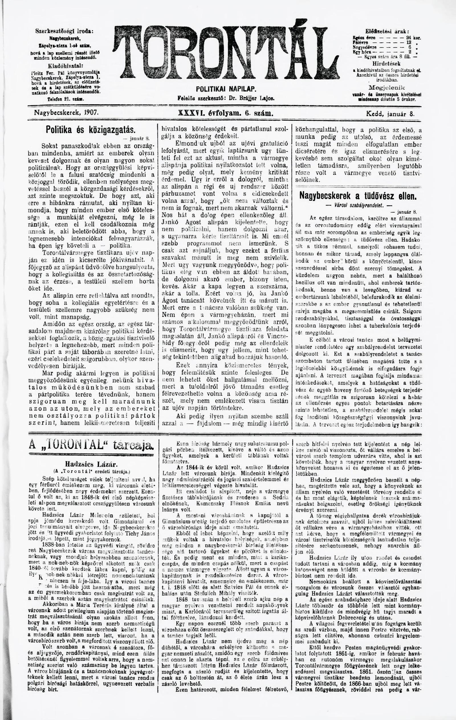 Torontál, 36. évf. 1907. január 8. 6. sz.