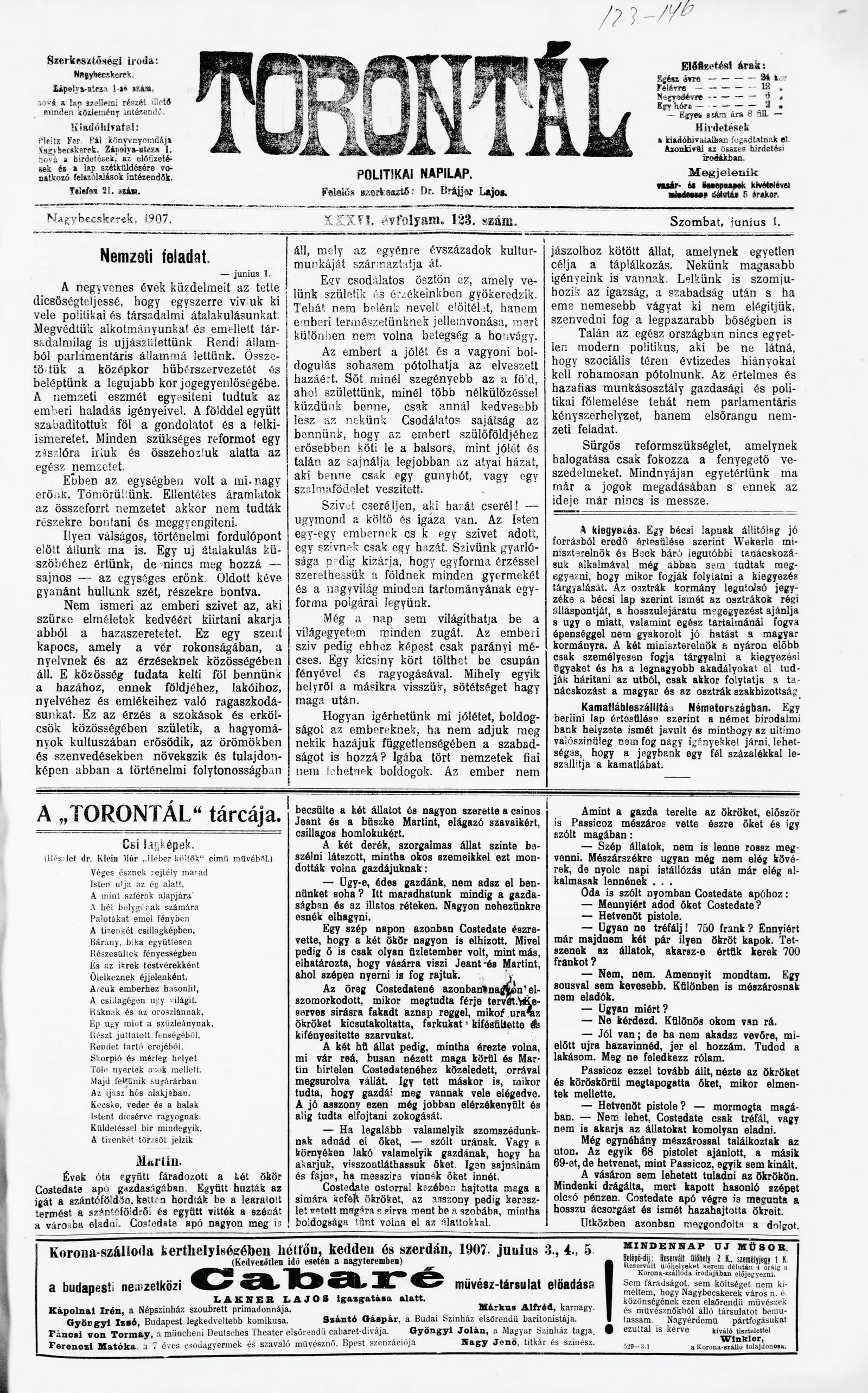Torontál, 36. évf. 1907. június 1. 123. sz.