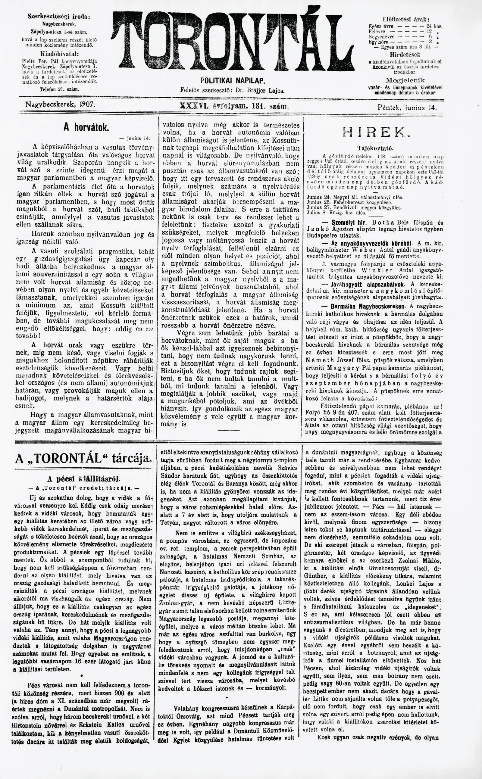Torontál, 36. évf. 1907. június 14. 134. sz.