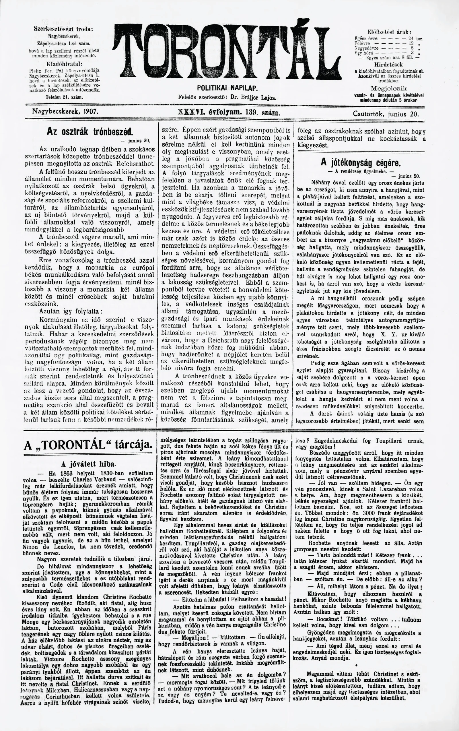 Torontál, 36. évf. 1907. június 20. 139. sz.
